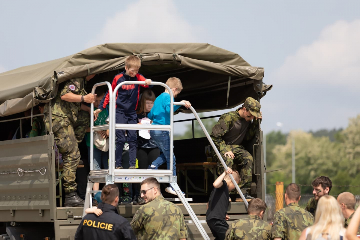 V úterý 3.6. jsme pořádali Dětský den a kasárna patřila dětem. Užily si spoustu dynamických ukázek, soutěží, her, prolezly veškerou vystavovanou techniku a otestovaly svou odvahu na nízkých lanových překážkách.